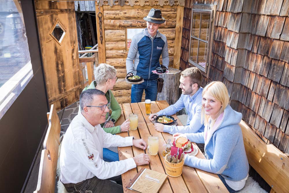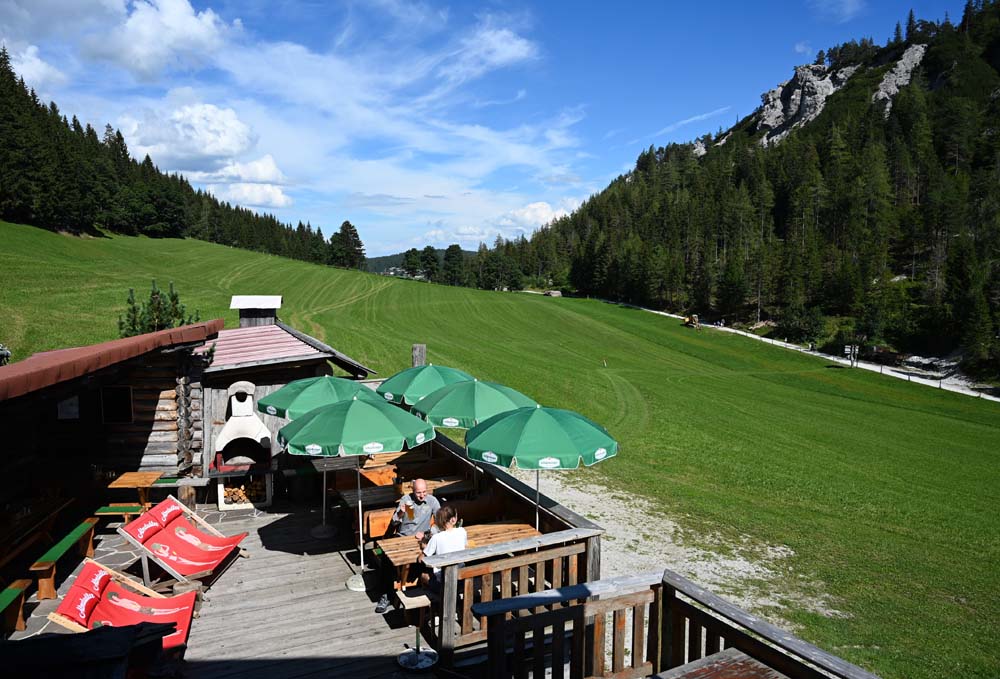 Am Vormittag kommt langsam Leben in die Umgebung der Hütte: Im Frühling und Sommer dringt bald das fröhliche, angeregte Geplauder von den Spaziergängern zur Hütte, während der Bauer seine Kühe versorgt. Im Winter ziehen die ersten Langläufer morgens über die Loipe und das Gebimmel der romantischen Pferdeschlitten, die sich auf dem Weg zur Halseralm oder Sonnenalm befinden, ist zu hören. Unsere tagsüber geöffnete Gastronomie ist ein beliebtes Ziel für Wanderer und bietet Gelegenheit zu einer kleinen Rast vor der Hütte. Bei Tee, Bier und Jause werden die Liegestühle auf der Sonnenterrasse genossen.
