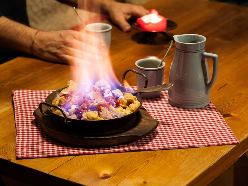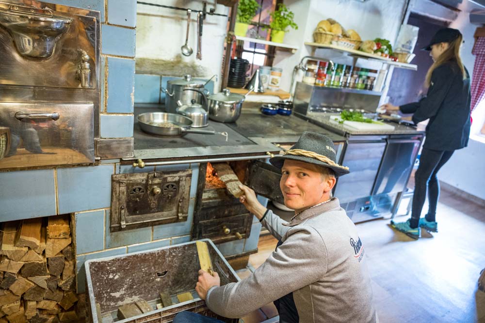 Erleben Sie hautnah, wie der Wirt Peter die traditionellen Speisen auf dem uralten, gemauerten Holzherd zubereitet, wie z.B. den leckeren Hüttenburger oder das köstliche "Holzhackermuas", das dann gleich vor Ihren Augen flambiert wird und seinen herrlich aromatischen Geruch verströmt. Dazu noch einen Glühmost nach Art des Hauses und Sie werden Ihr kulinarisches Erlebnis auf der Rösteralm noch lange in Erinnerung behalten...